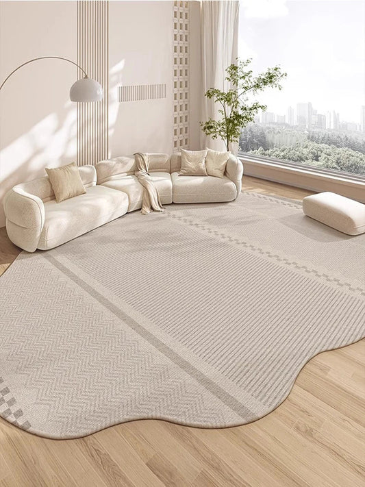 Non-Slip Area Rug – Beige Striped Artistic Carpet for Living Room & Bedroom