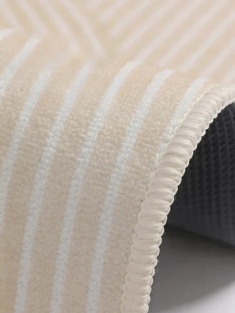 Non-Slip Area Rug – Beige Striped Artistic Carpet for Living Room & Bedroom